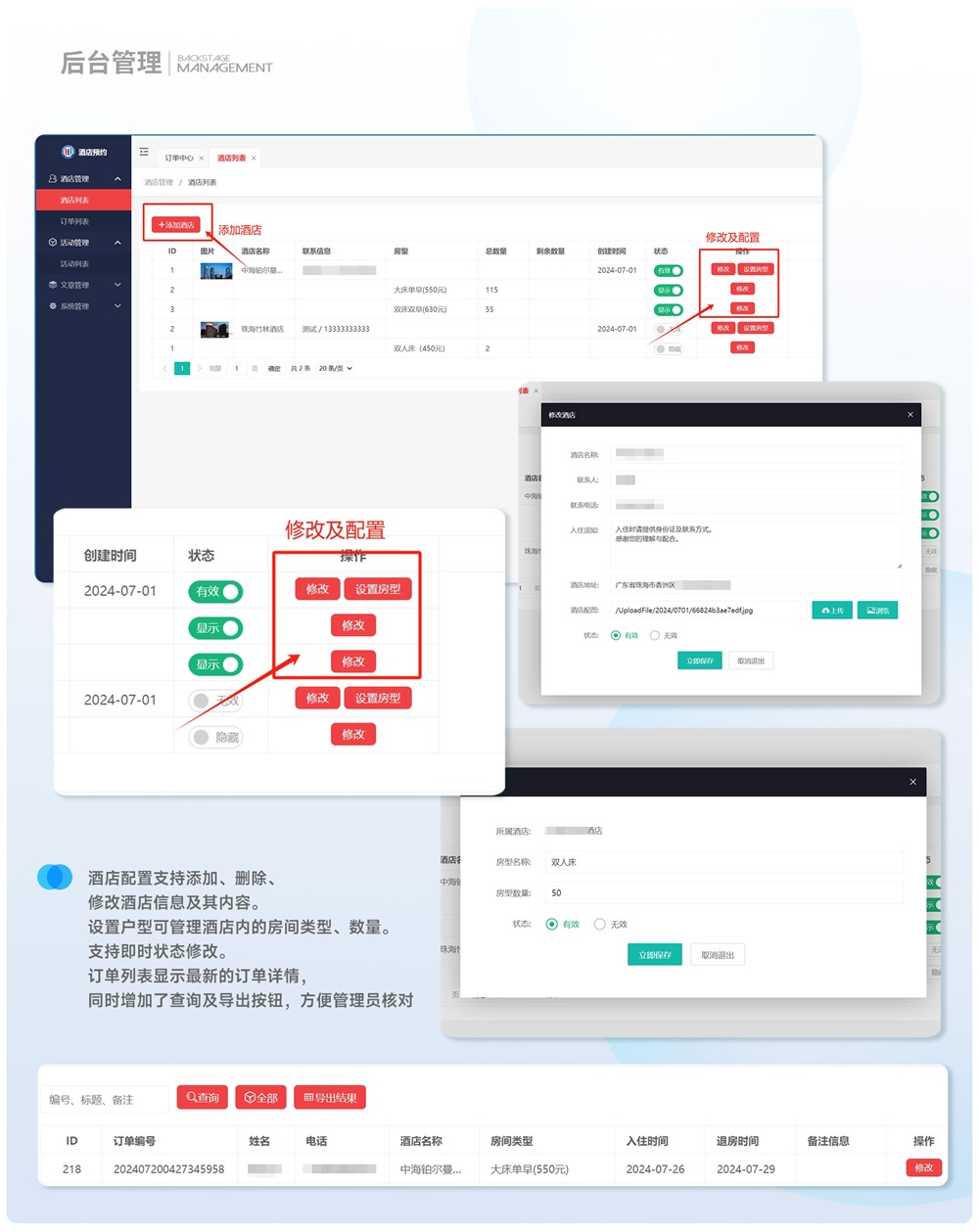 發布活動:管理(lǐ)員(yuán)可(kě)以發布新的(γ↑de)會(huì)議(yì)酒店(diàn)預約&↓活動,設置活動名稱、時(shí)間(jiān)、地(dì)點、酒店≤∏✘(diàn)信息、房(fáng)型及可(kě)預訂λ₽∞數(shù)量等。